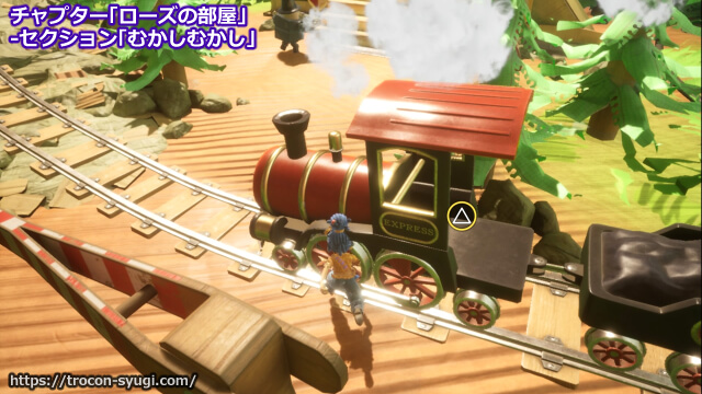 チャプター「ローズの部屋」の「むかしむかし」で取得可能。開始直後の広いエリアに走っている列車の運転席にのればトロフィー取得。