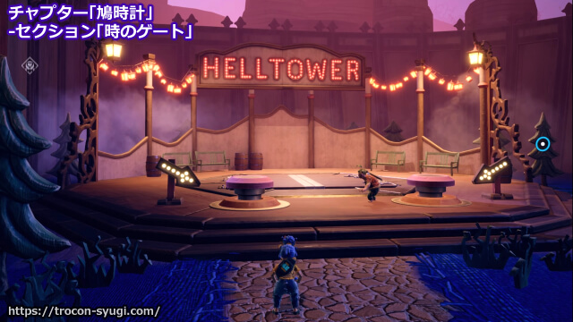 チャプター「鳩時計」の「時のゲート」で取得可能。街へ到着したら時計塔を正面に見て左側奥にHELL TOWERと書かれた広場があり、2つのボタンを同時に押すとタワーが出現するので、その最上部まで登ればトロフィー取得。