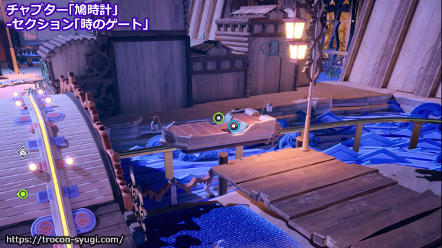 チャプター「鳩時計」の「時のゲート」で取得可能。街へ到着したら時計塔を正面に見て右側の川沿いにボートがあり、それに乗って洞窟の中に入った先の建物の中に入ればトロフィー取得。