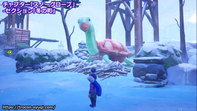 チャプター「スノーグローブ」の「冬の町」で取得可能。町の中に入って鐘をいくつか鳴らすと4匹の子ガメが出現するので、全員を氷の川の端にいる親ガメのところまで連れていけばトロフィー取得。
