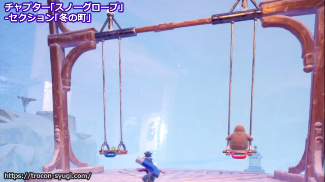 チャプター「スノーグローブ」の「冬の町」で取得可能。【落とし物】と同じ町の中に村人が座っている赤いブランコがあるので、後ろからコーディが磁石でブランコに勢いをつけて村人を吹っ飛ばせばOK。