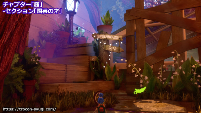 チャプター「庭」の「園芸の才」で取得可能。地面に潜る敵(モグラソウ)を倒したあとSPAと書かれた看板があるので、その小屋の中に入って湯舟にインタラクトすればトロフィー取得。