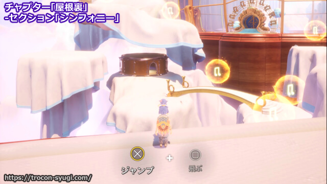 チャプター「屋根裏」の「シンフォニー」で取得可能。空を飛べるエリアに入ったら下側に小屋が見えるので、その中に入ってイスにインタラクトすればOK。