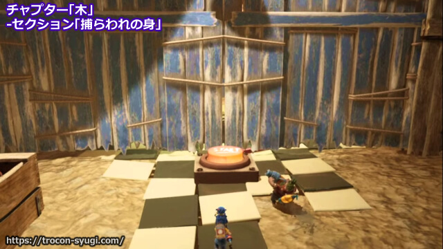 チャプター「木」の「捕らわれの身」で取得可能。セクションを開始してしばらくは道なりにすすんだあと、十字型の足場を回転させて進むエリアの先にある地面のボタンを押すと押したプレイヤ―が瓶の中に吸い込まれてトロフィー取得。