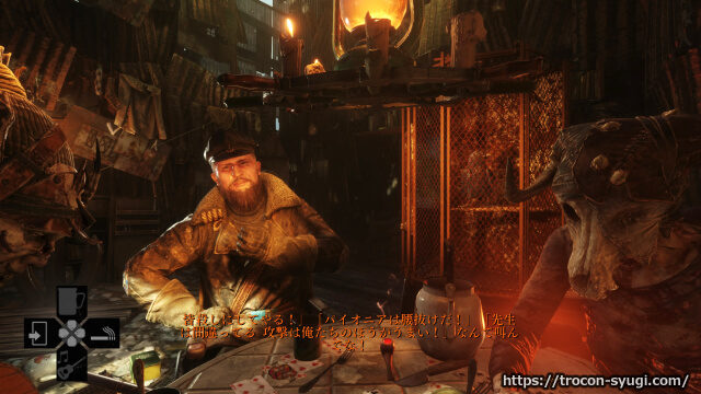 ガスマスクをかぶっている状態でダメージを受けるとガスマスクにヒビが入っていき、ある程度ひどくなるとL1ボタンで修繕できるようになる。