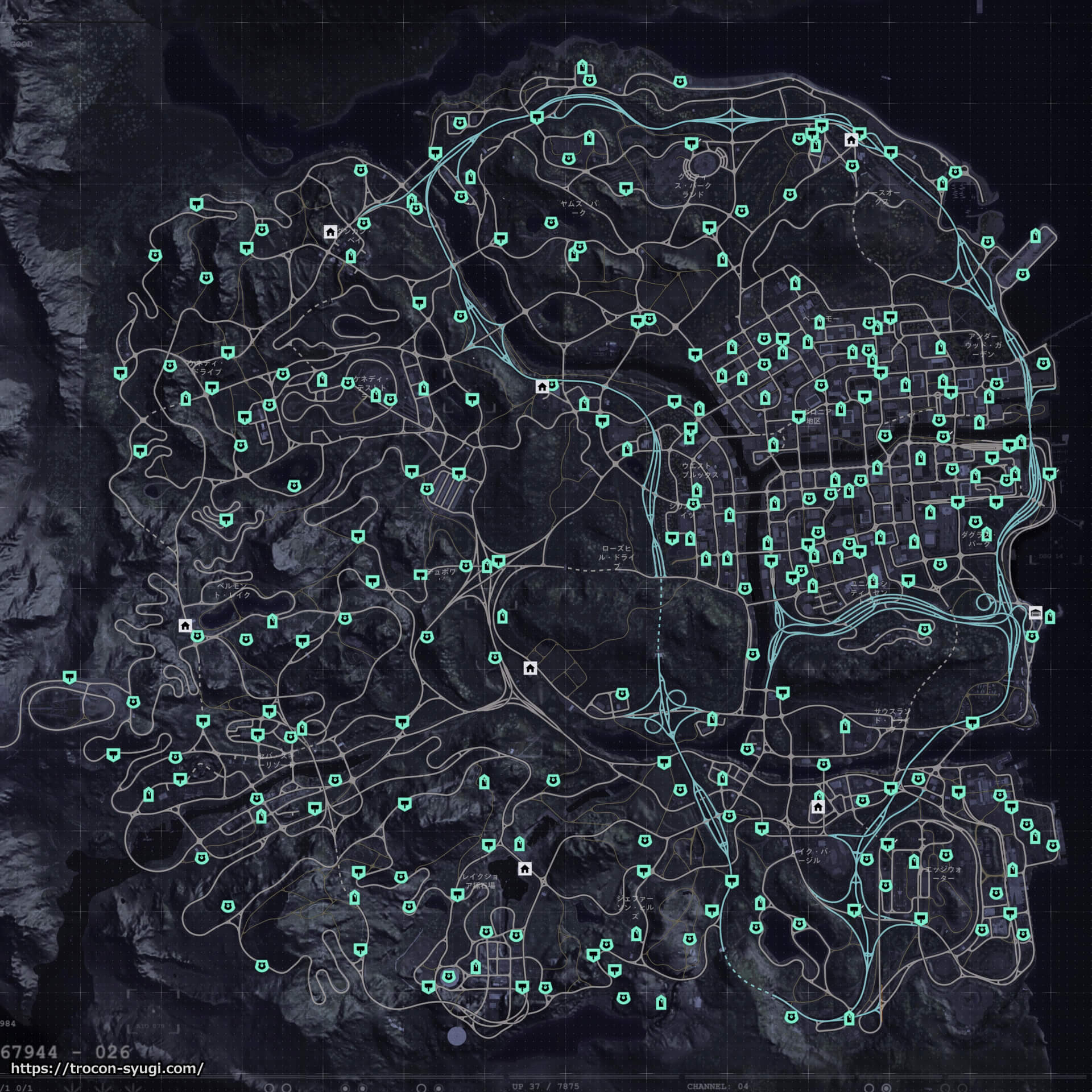 作業トロフィー。レイクショアにあるベア100個、ストリートアート60個を集めて看板80個を破壊すればトロフィー取得。