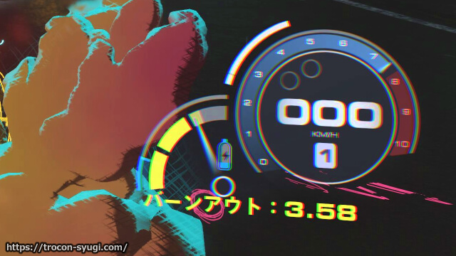 アクセルとブレーキ同時押しのバーンアウトであれば簡単にバーストナイトロを貯められるのでオススメ。
